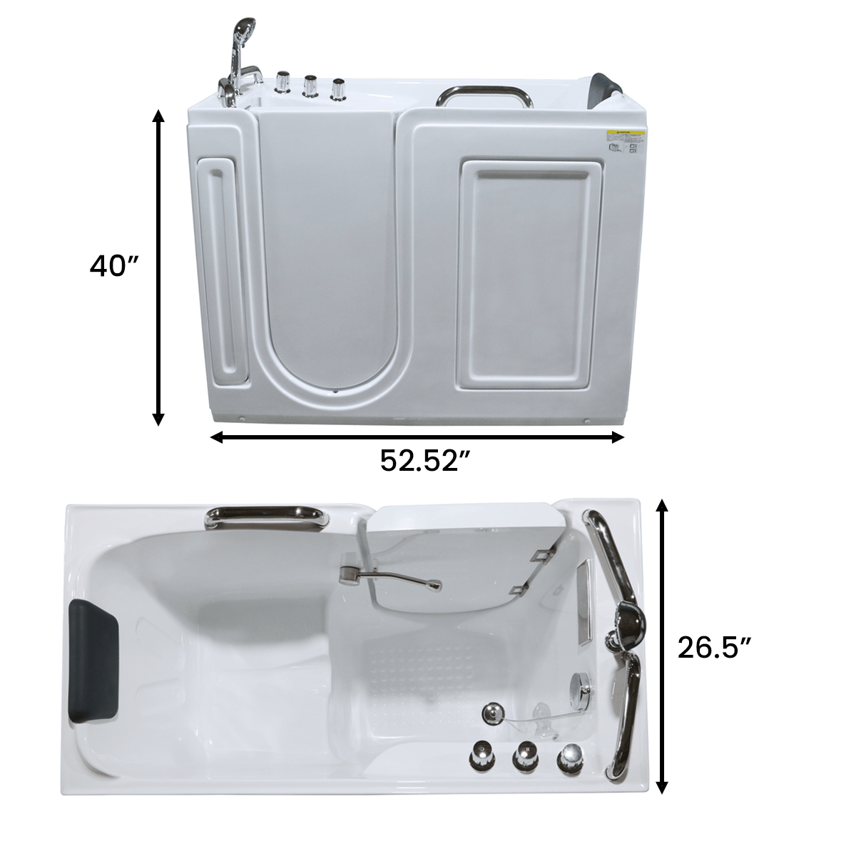 53 in. Acrylic Walk in Bathtub for Disabled Person, - Left Side Door
