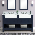 60" Farmington Freestanding Solid Wood Bathroom Vanity in Navy Blue with Carrara Engineered Stone Top with 4 in. Backsplash & Apron Farmhouse Double Sink