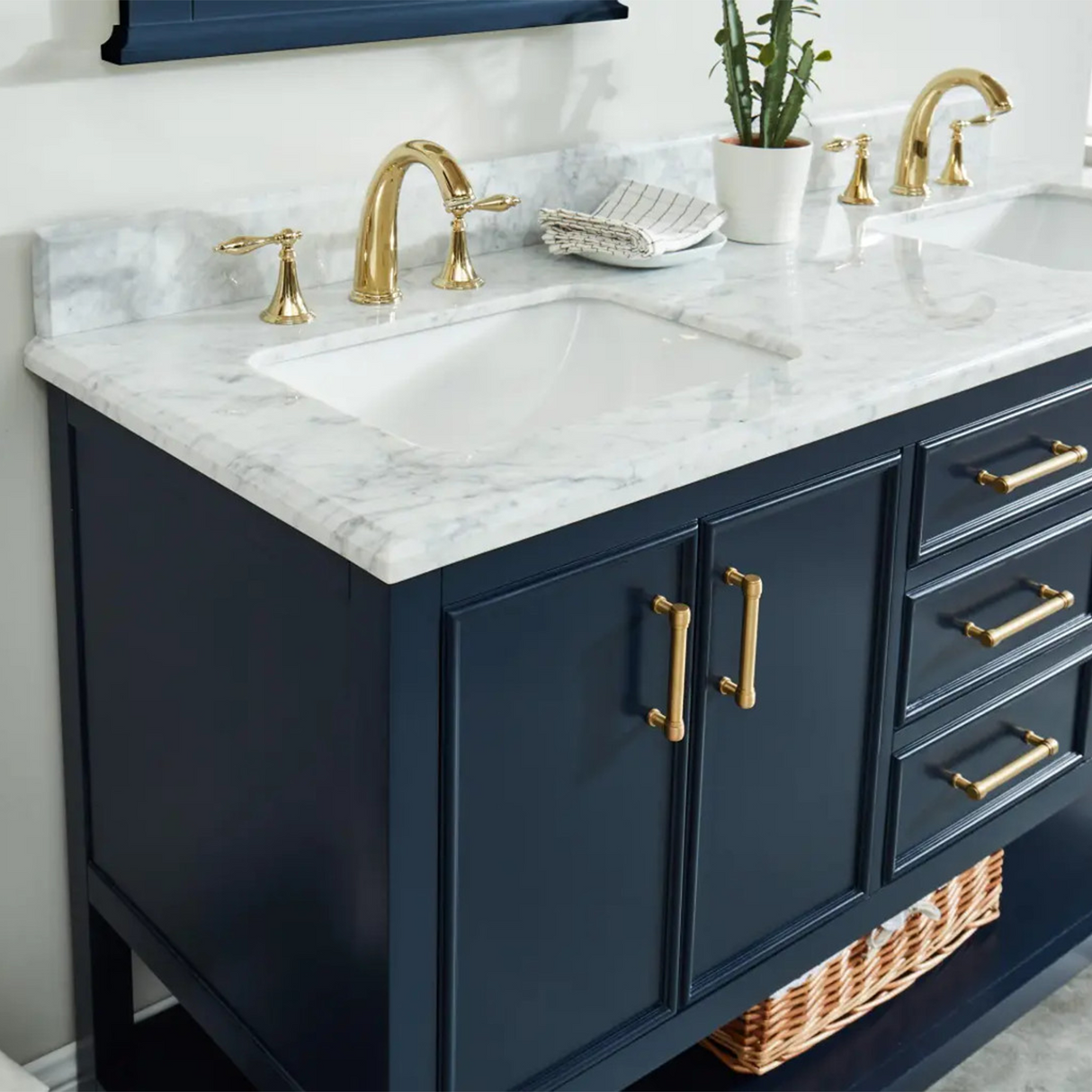 61" Bathroom Vanity in Navy Blue With Double Sink - Premium Manhattan Family