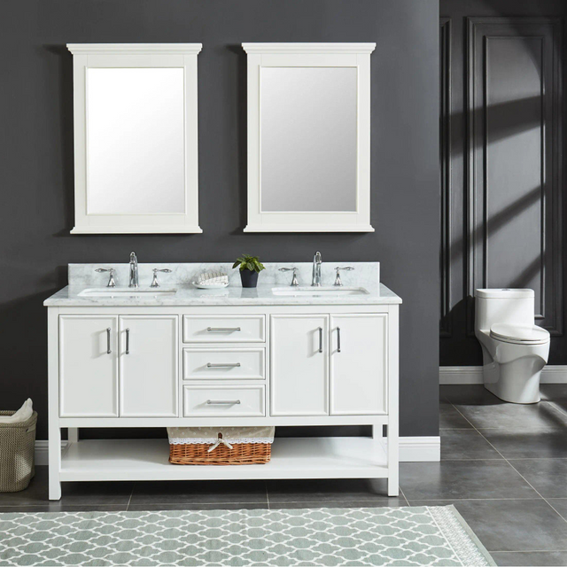 61" Bathroom Vanity in White With Double Sink - Premium Manhattan Family