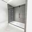 Enhance your bathroom with the 72" x 76" Semi-Frameless Single Sliding Glass Shower Door, designed in a modern barn door style. Featuring 3 tempered glass panels, it combines sleek aesthetics with practicality, offering easy access and long-lasting durability. The smooth roller set, bar-style handle, and sturdy top rod ensure seamless operation and stability. Perfect for adding a contemporary touch, this shower door transforms your bathroom into a functional and stylish retreat.