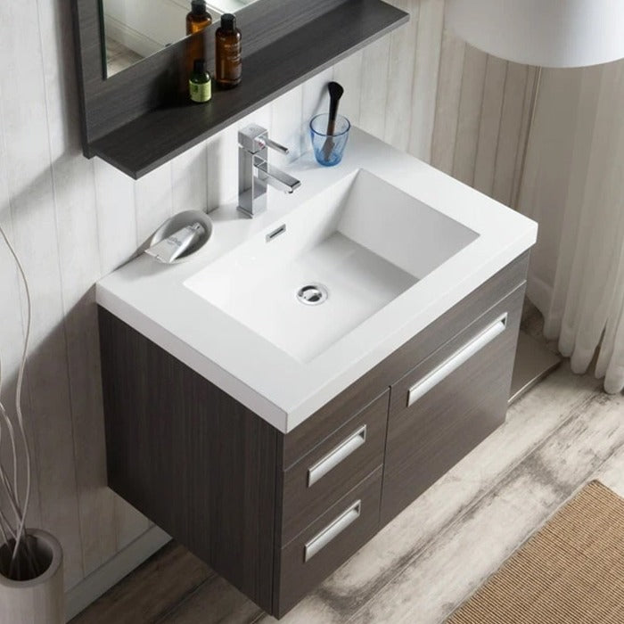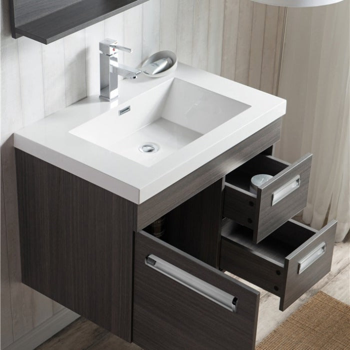 Alpha Floating / Wall Mounted Bathroom Vanity with Acrylic Sink - 30 INCH L / Gray Oak is backordered and will ship as soon as it is back in stock.