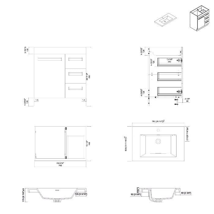 - Single vanity makes installation easier while optimizing storage space