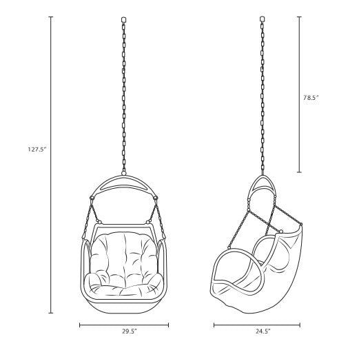 All work and no rest can make anyone a gloomy person. Alleviate the days fatigue as you rest on the Jungle hanging patio chair. This sing chair will allow you to set up the tranquil rest area that you have been thinking about for days now. It is an elegant rendition of a hanging rattan chair that will add charm to your backyard or patio. This swing chair comes with a sturdy powder-coated steel frame and a 78.5-inch steel chain. All youll have to do for enjoying a cozy seating experience with this swing chair is adjusting its height by your preference. Also, hanging this UV-resistant chair to the ceiling will be easy as it comes with a hook. Shop now to experience enhanced comfort and simple charm at a reasonable price!Product Specification & Other Info