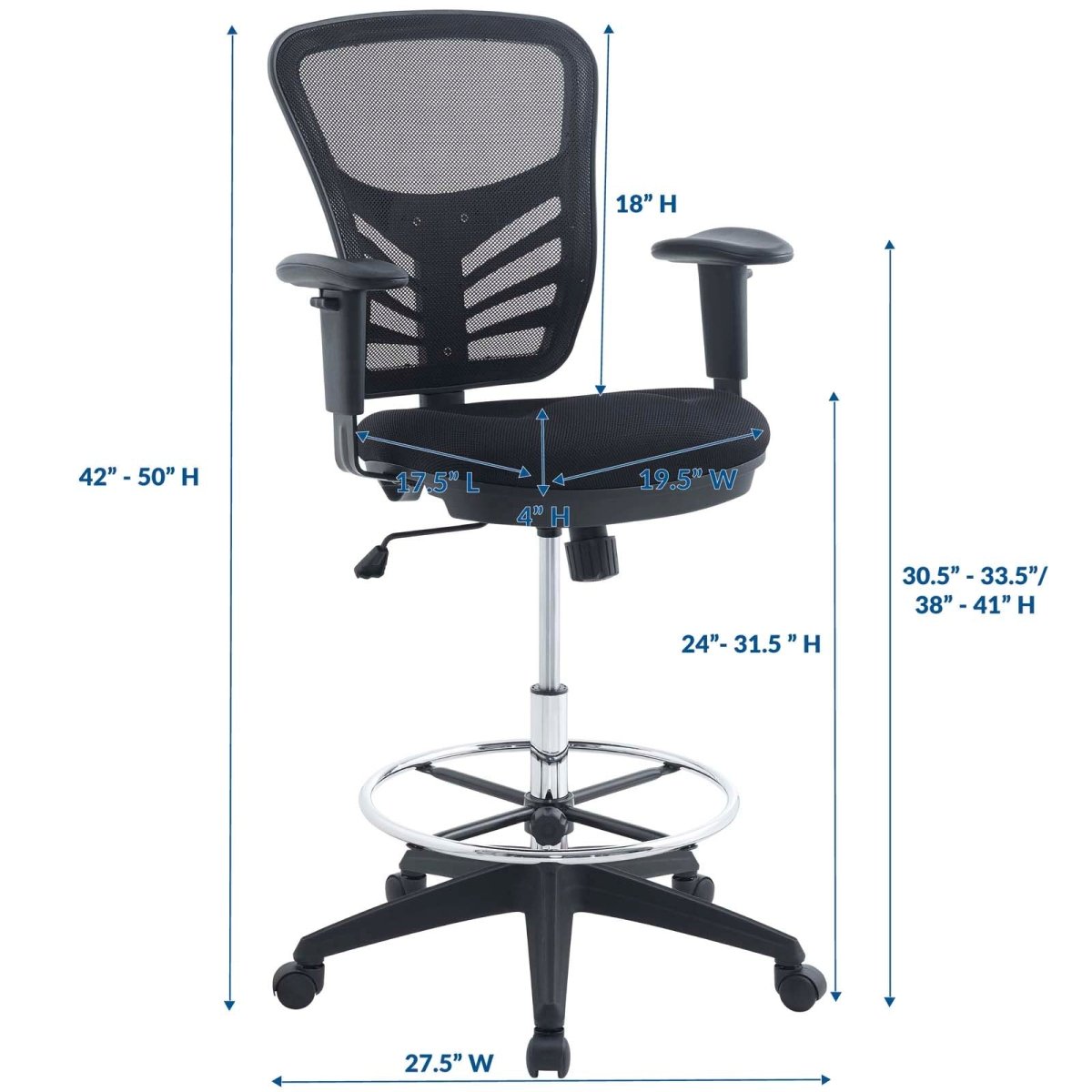 | Armrest Height: | 30.5 - 33.5/38 - 41 Inch H |
