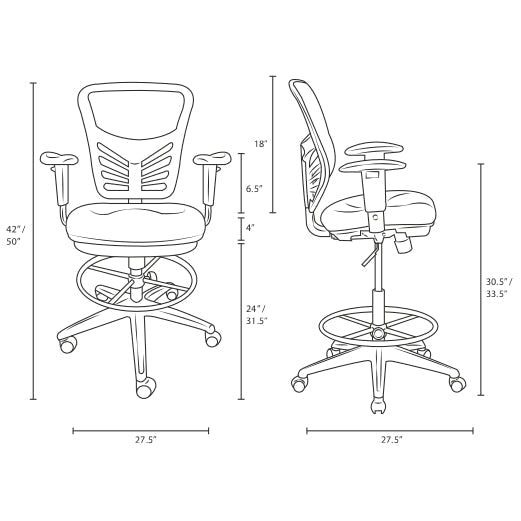 | Seat Dimensions: | 17.5 Inch L x 19.5 Inch W x 24 - 31.5 Inch H |