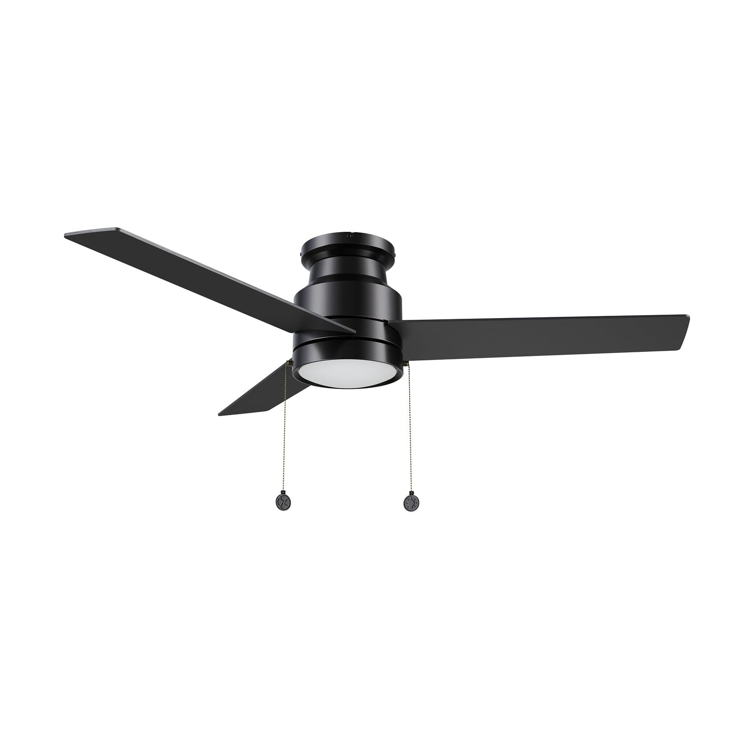ASCOTT 52 inch 3-Blade Flush Mount Ceiling Fan with LED Light & Pull Chain