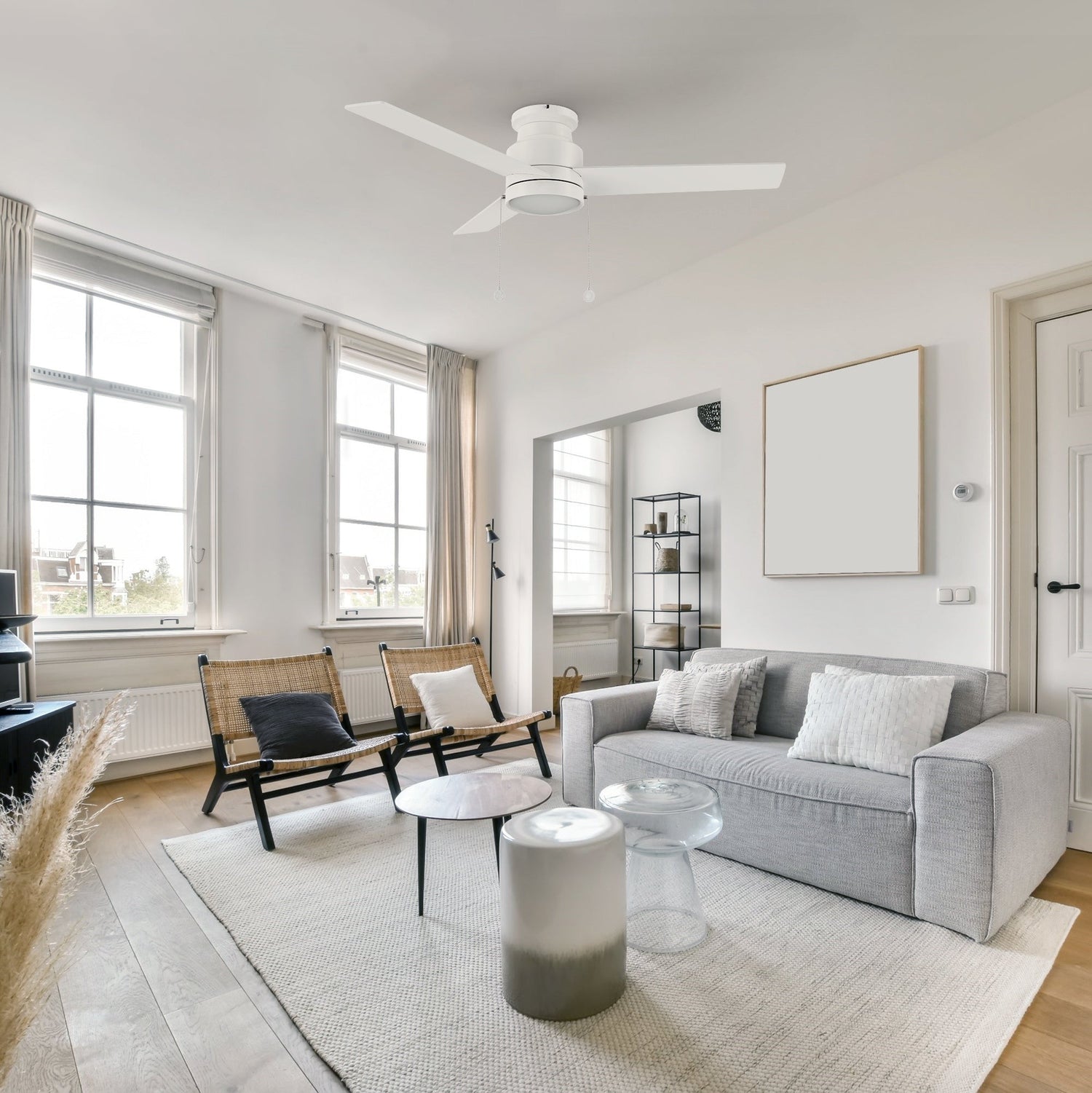 ASCOTT 52 inch 3-Blade Flush Mount No Light Ceiling Fan with Pull Chain