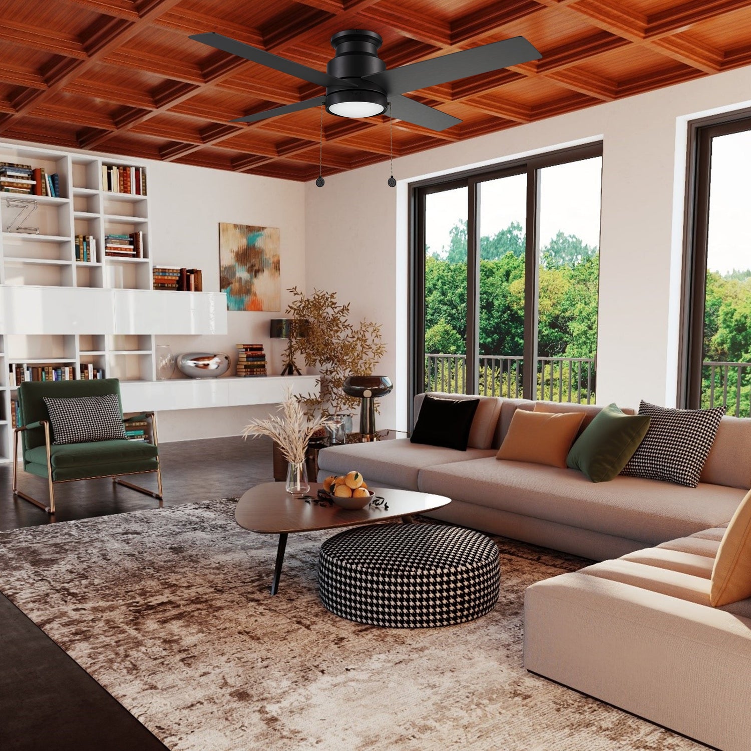 ASCOTT 52 inch 4-Blade Flush Mount Ceiling Fan with LED Light & Pull Chain