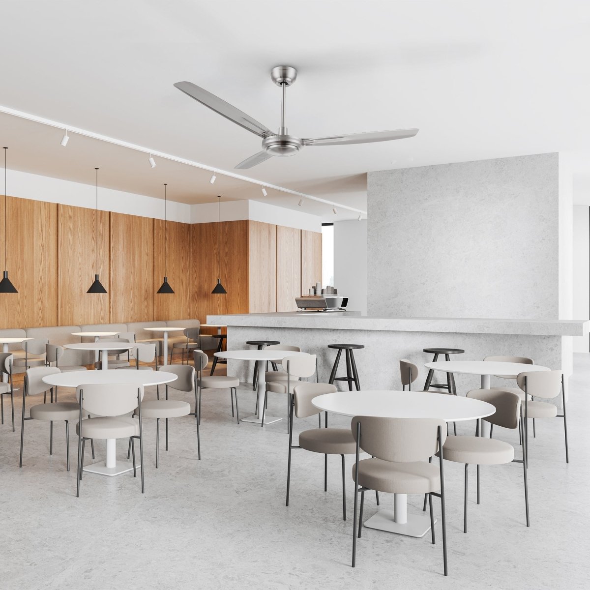 Carro Oberon 56" indoor ceiling fan provides a cooling breeze and refreshing environment to any space. The fan has highly durable metal blades and a sleek design. Large air volume, stable and quiet DC motor with a full function remote control. The fan features a modern and industrial sleek designed fan body and high quality metal fan blades. It's perfect for controlling cooling time and conserving energy.