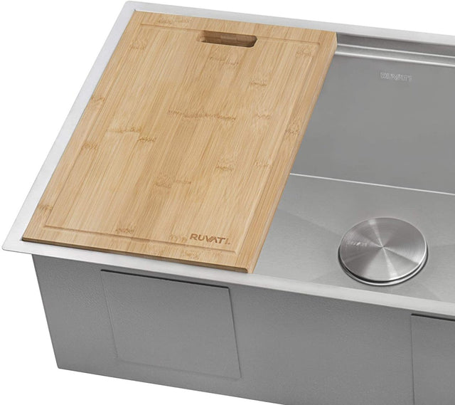 This solid natural bamboo cutting board fits your Ruvati workstation sink. You can get it as a replacement or as an extra cutting board for your daily needs.