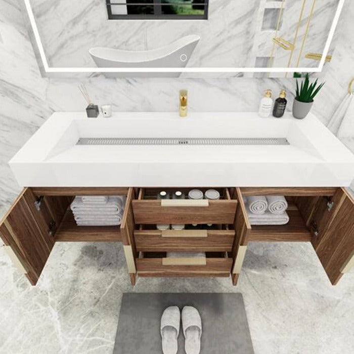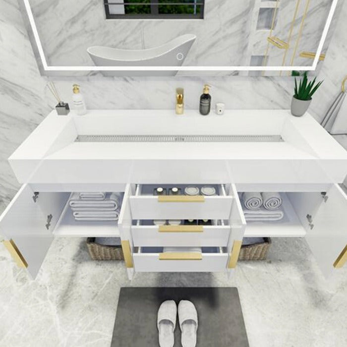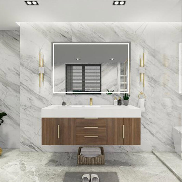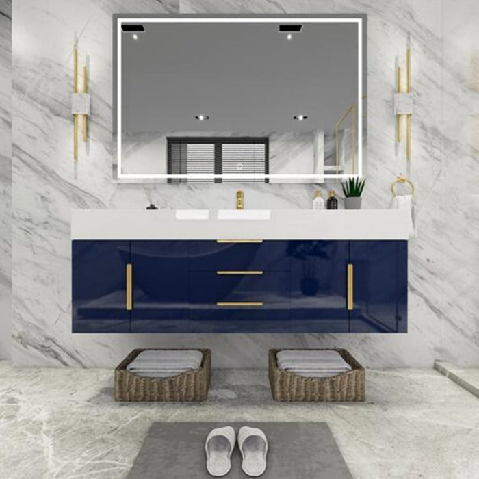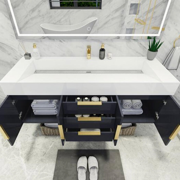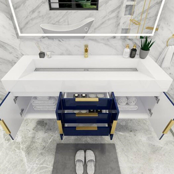 Blossom 60 In. Floating Single Sink Bathroom Vanity With Acrylic Sink Top, Drawers & Aluminum Alloy Frame