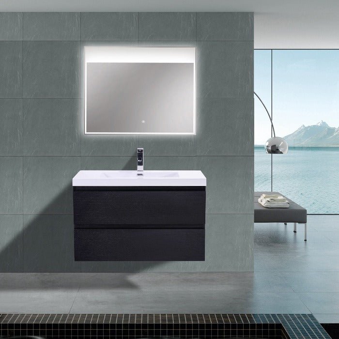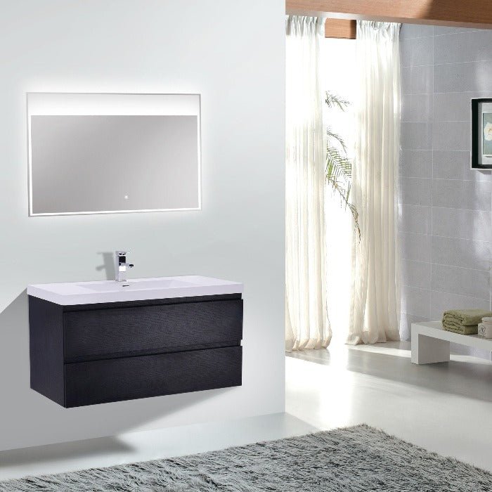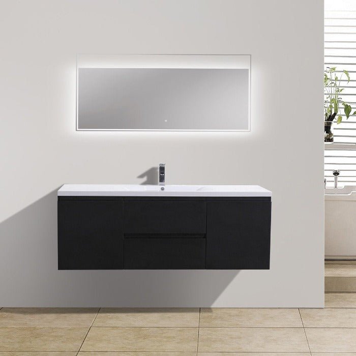 Brooklyn Floating / Wall Mounted Bathroom Vanity - Rich Black With Reinforced Acrylic Sink