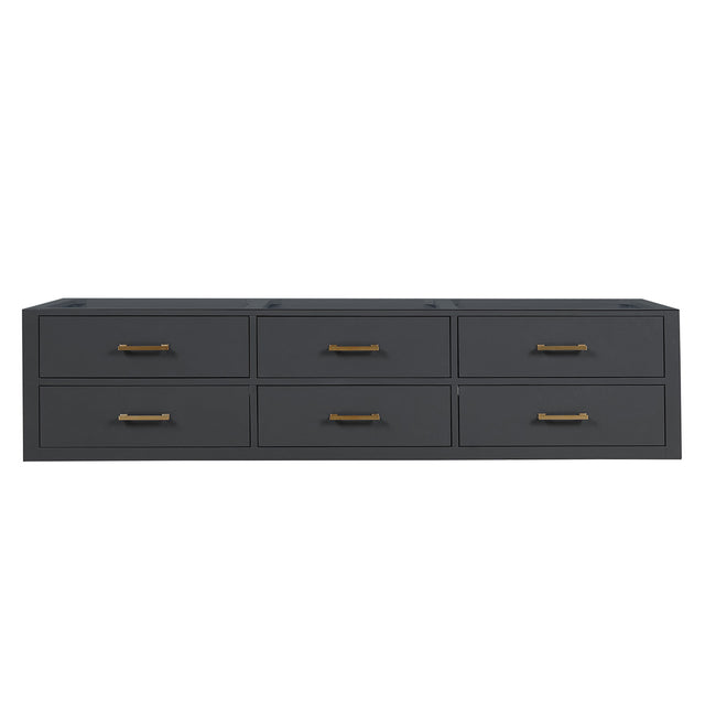 The Castor bathroom vanity features an eye-catchy wall hung design that comes in solid colors, White, Blue and Black, completed by a sleek top to create an exciting decor structure that stands out with its sophistication and class. Simple and elegant, this bathroom vanity doesn’t compromise functionality, being designed with drawers spacious enough to fit all your bathroom essentials and cosmetics. The cabinet comes pre-assembled to ensure easy installation. Solid colored body with decorative accents, this vanity brings freshness with a chic twist to any bathroom decor.