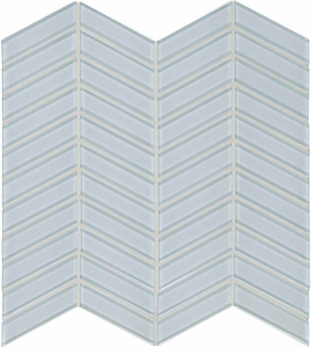 Element 11.73x11.73 inch Element skylight glossy glass chevron mosaic is an attractive way to give your walls the high-caliber beauty and luxury they deserve. This compact, sophisticated design also means that this glass makes an excellent choice for residential living spaces. Enhance the look with a courteous way to decorate any interior wall and flooring. The unique patterns of the mosaic deliver an enchanting yet abstract look. The unique abstract pattern of this tile is sure to catch people's attention as they see how intricately crafted this beautiful glossy glass design looks. This skylight color Glass Mosaic tile is ideal for dry and wet locations. In addition, they are highly durable and are scratch and break-resistant. With an 8 mm thickness, this mosaic has the tendency to last longer. Adding to that, they are easy to clean and maintain. The mild shade goes best with the glass formation of this piece.