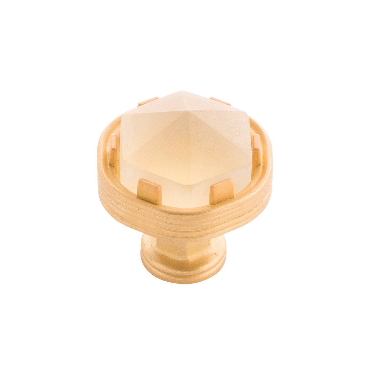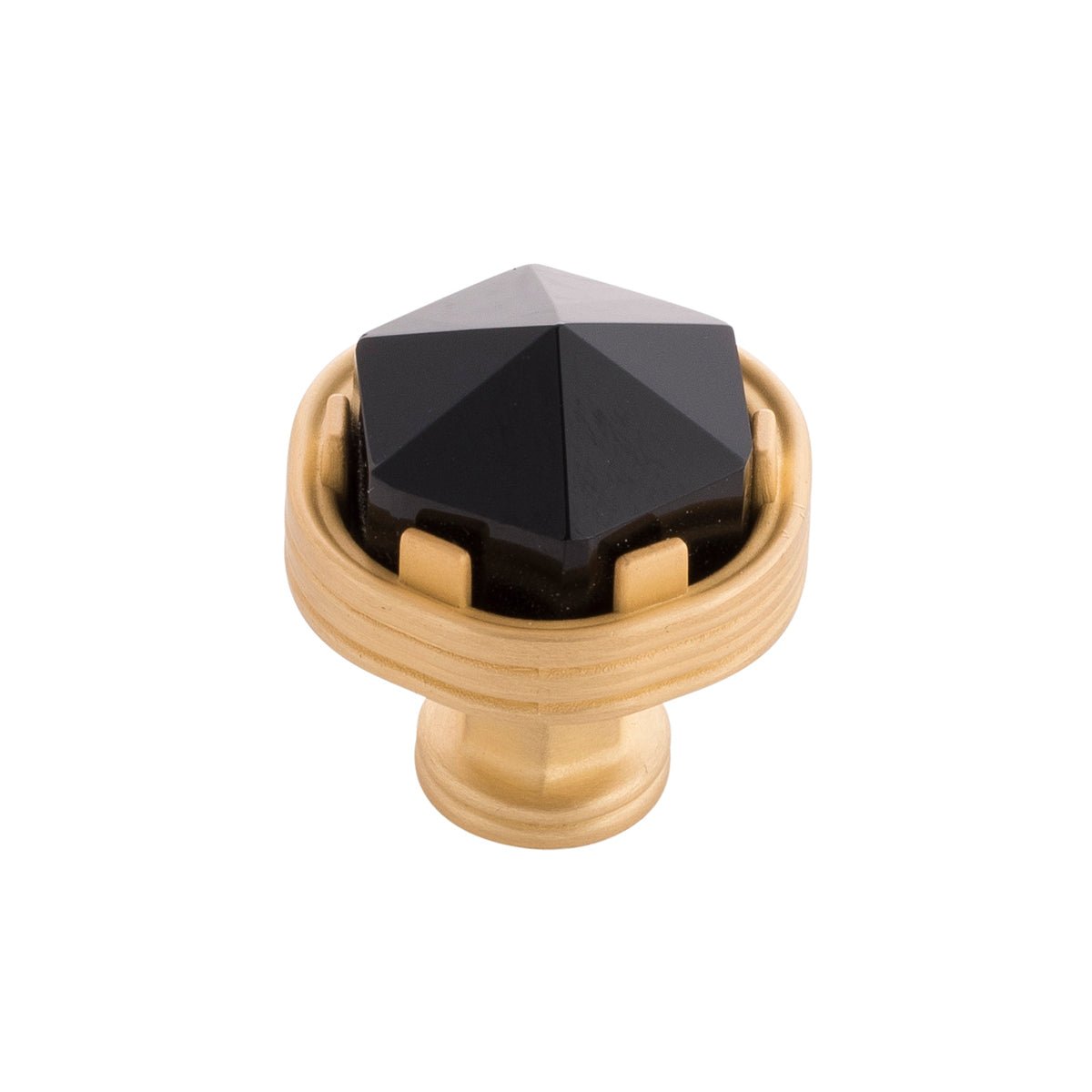 Chrysalis Collection - Belwith Keeler - Knob, 1-3/16" Dia. | B076304 - Brushed Golden Brass With Opaque Black Glass / 1-Pack is backordered and will ship as soon as it is back in stock.