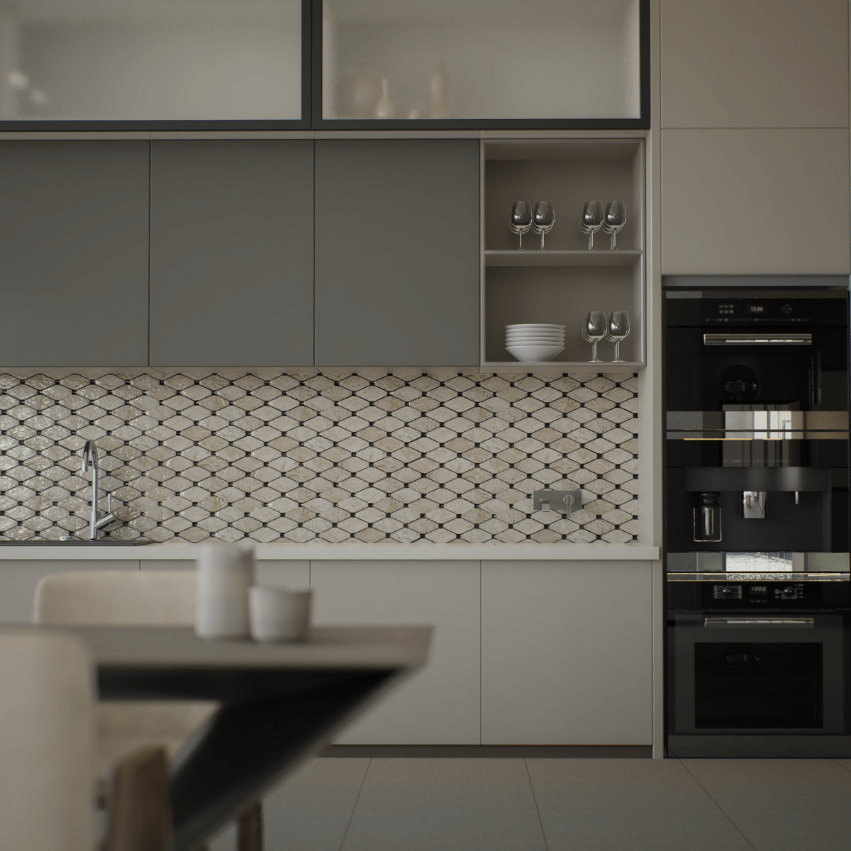 The pleasing beauty of this clipped diamond pattern of the Impero Reale polished marble mosaic collection adds a unique touch to your interiors. However, the clipped diamond marble patterns are something that is not worn out further. In simple terms, the pattern is pretty unique and will surely deliver a unique sense of touch to your location. In addition, the polished finish in this mosaic is an add-on to its dwelling beauty.