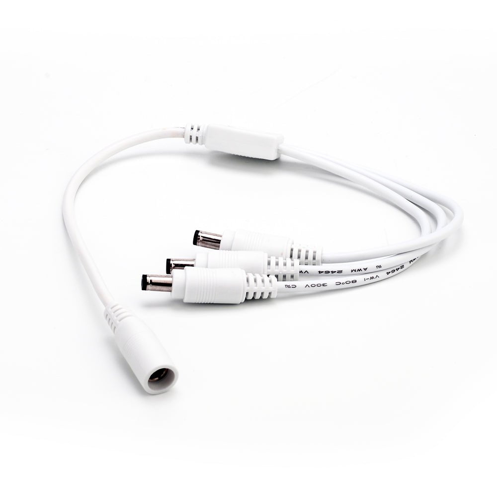 1: 3 Splitter DC connection wire. "1" wire is 20AWG, female 5.5DC and "3"wire is 22AWG, male 5.5DC available in white & black . Easily powers multiple products with one Compact Power Supply