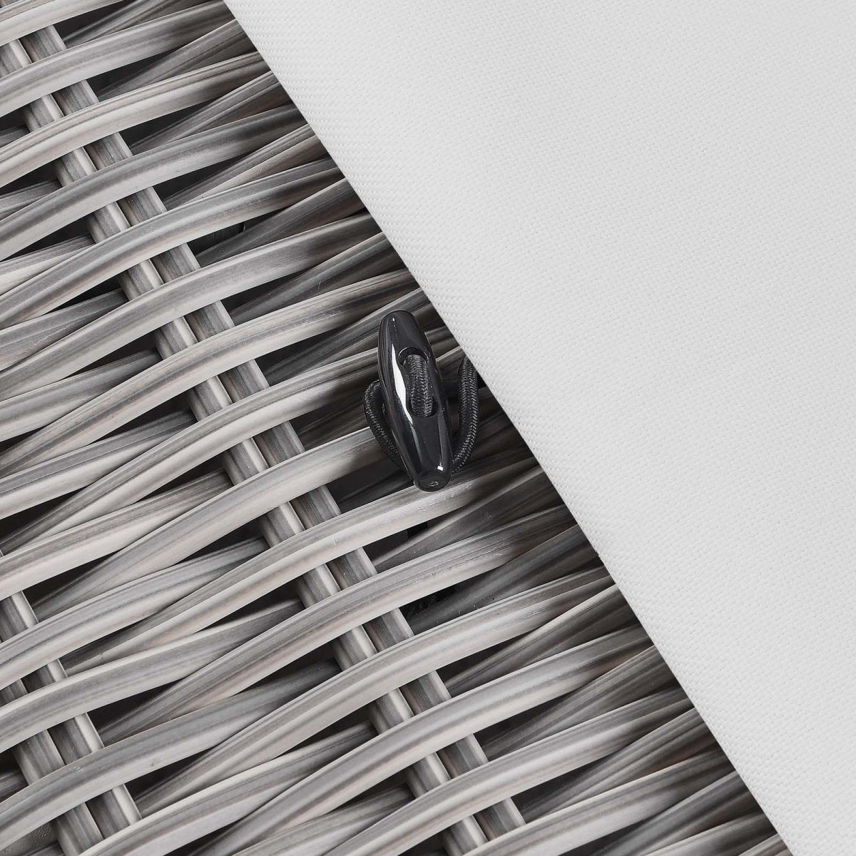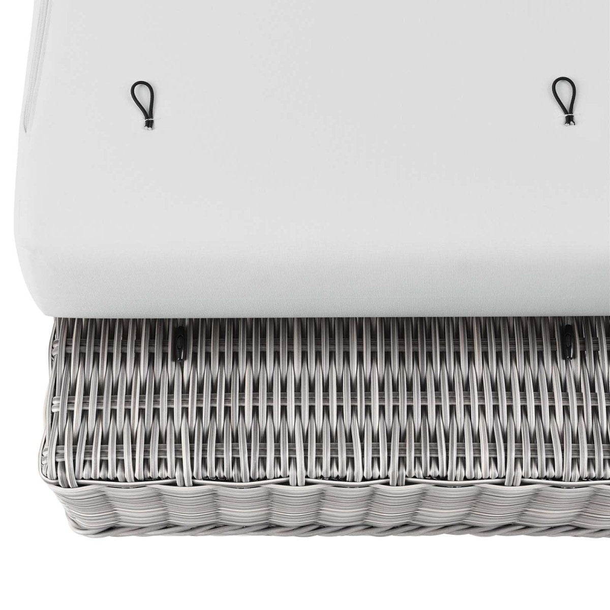 Enjoy fresh air and alfresco relaxation with the Conway Outdoor Patio Wicker Rattan Ottoman. Wrapped in UV-resistant light gray synthetic wicker rattan, this patio ottoman boasts organic texture and a neutral hue that brings a calming presence to your outdoor space. The frame of this outdoor ottoman is crafted with durable powder-coated aluminum and rests on L-shaped legs with plastic foot glides. A thick foam padded cushion covered with a removable, water-resistant polyester cover offers a comfortable seat and affixes securely to the ottoman with a cord tension attachment. Trending aesthetics and a classic design define this outdoor patio furniture collection making it a beautiful addition to any outdoor space including the backyard, patio, porch, balcony, or poolside. Assembly required. Patio Ottoman Weight Capacity: 300 lbs.