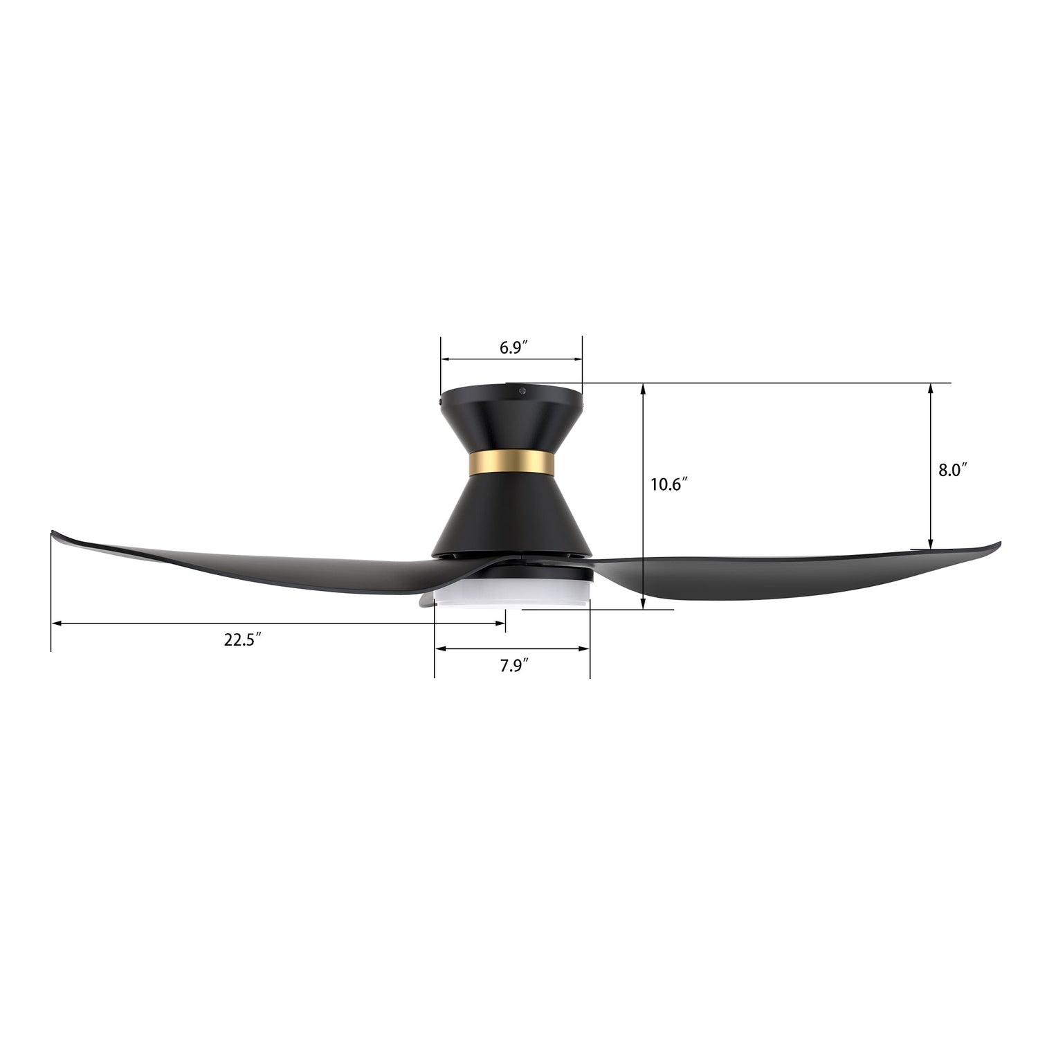 RYATT 45 In 3 Blade Smart Ceiling Fan With Integrated LED Lights With Google Home