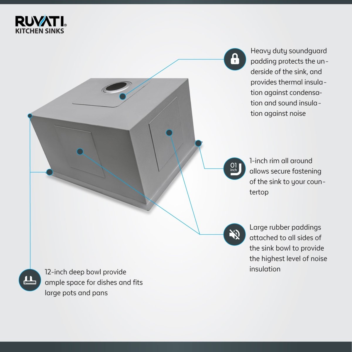 Enrich the environment of the kitchen with the classy and sophisticated Deep Utility Undermount kitchen sink. This sink is ruling over all other kitchen sinks with its huge size. The large bowl of the sink helps to reduce the mess in the kitchen. It gives enough space to wash all the large dishes. This sink makes the kitchen look more attractive with an affordable price. The high durability of the sink makes it the priority of the buyers. With the slanted bottom and drain grooves, the water easily channels towards the drain. The large paddings attached to all the sides of the sink provides the highest level of noise insulation. The in-built accessories of this kitchen sink is the major attraction of this sink. Ruvati sinks are available in an array of colors which makes the kitchen highly attractive. You can now have a kitchen that genuinely represents your individuality and flair.