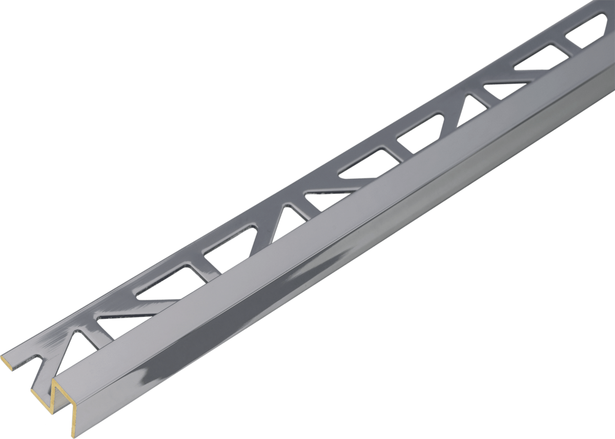 DURAPLUS profiles and corners are trims designed for use in many different applications and areas. They also offer a visually appealing, extra-wide 8 mm surface to suit tile depths from 7 mm to 25 mm thick. They are ideal for edging and protection, clean separation of different flooring finishes, and visual demarcation of different areas. DURAPLUS trims are available in a wide range of finishes in aluminum, stainless steel, brass, or chrome-plated brass.