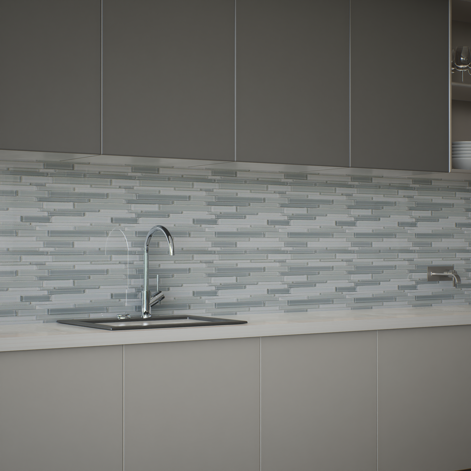 Element Grey Random Strip Glossy Glass Mosaic - Piece is backordered and will ship as soon as it is back in stock.