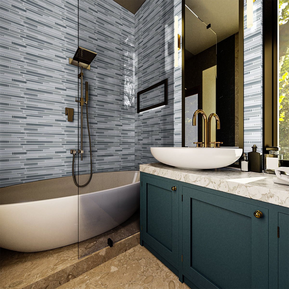 No matter what kind of design idea catches your fancy, we're sure these tiles will make anything sparkle like new again always. So, the Element shades of gray random strip glossy glass mosaic collection are the perfect accompaniment for any room in your home or office. They would look so apt in your interiors, including your bathroom walls. Moreover, these tiles are scratch-resistant and will deliver a long-lasting impact to your indoors. This collection is just what everyone needs in their homes today - beauty and sustainability. With an easy-clean property, you can clean this tile without any difficulty. In addition, the tiles are made in such a way that it resists stains and blotchiness. So don't wait for another second to give this collection a second thought. Just go for it!