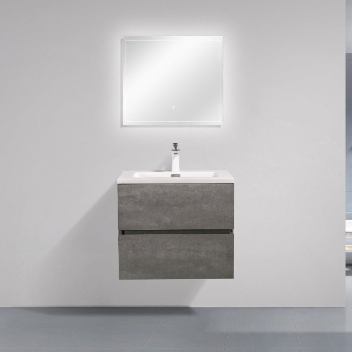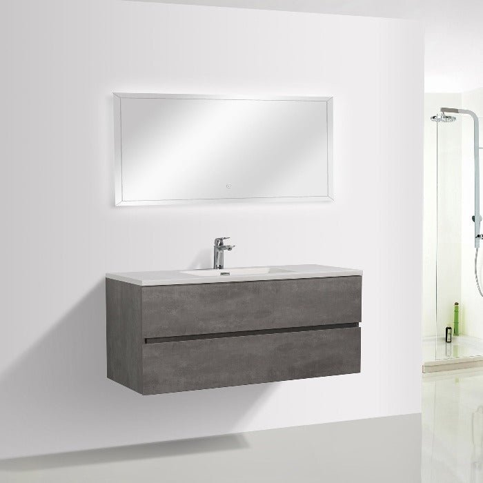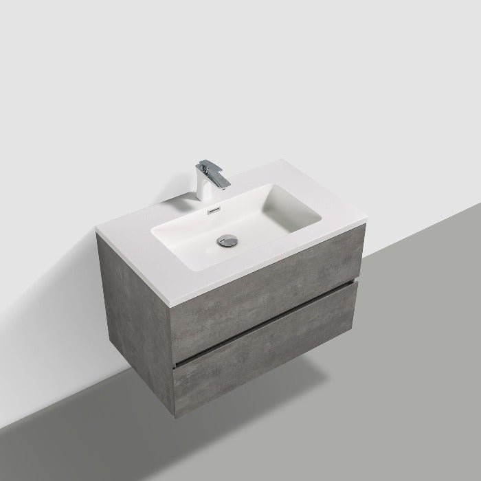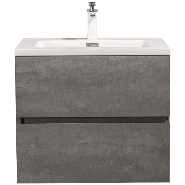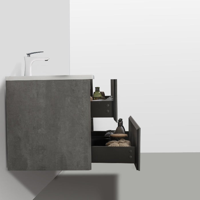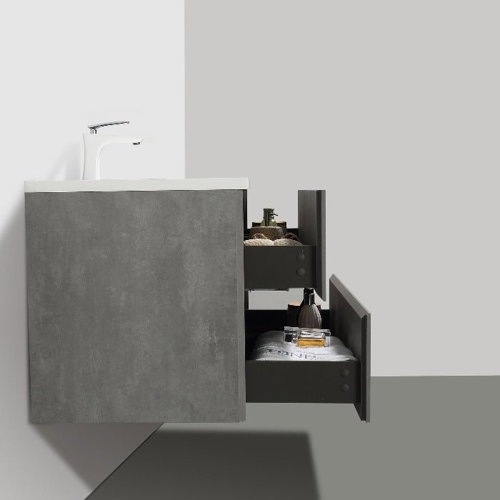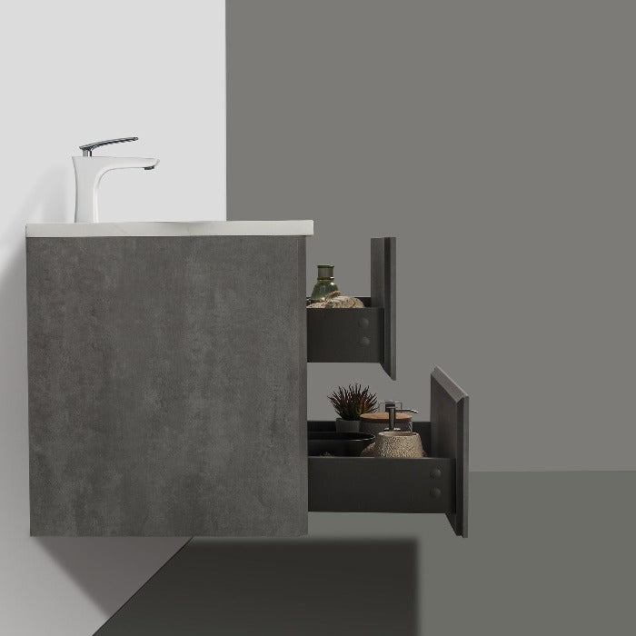 Wall Mounted Vanity in Cement Gray with White Quartz Integrated Single Sink