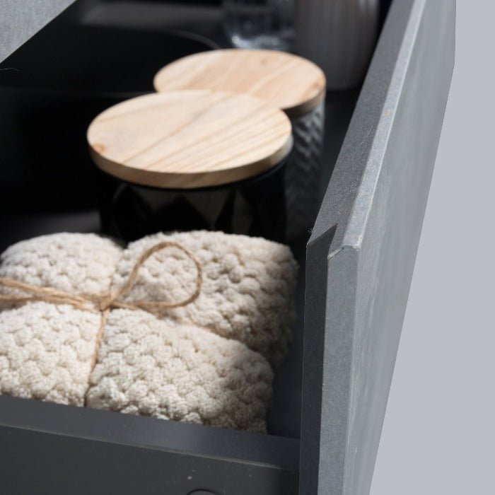 - Design High-quality cement grey panel with black quartz sand basin, strong industrial style.