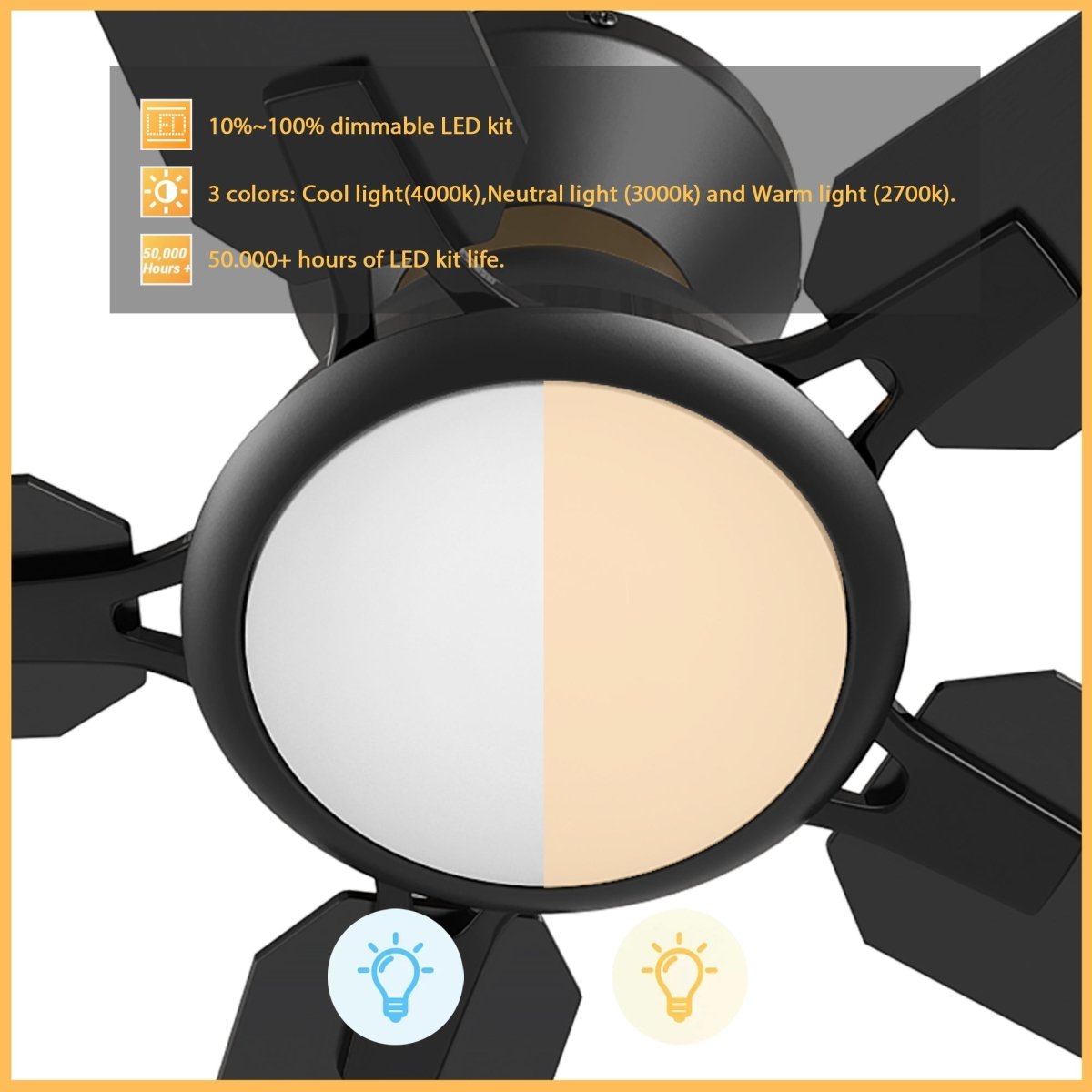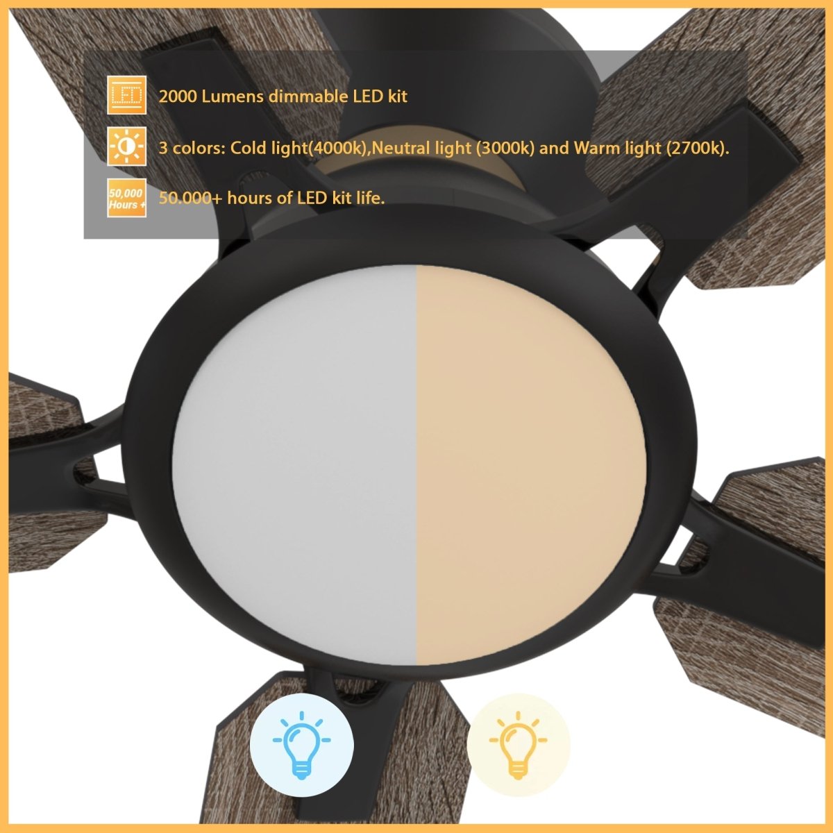 - Includes integrated LED light kit with warm light and day light, it offers lower energy consumption and a longer life span.