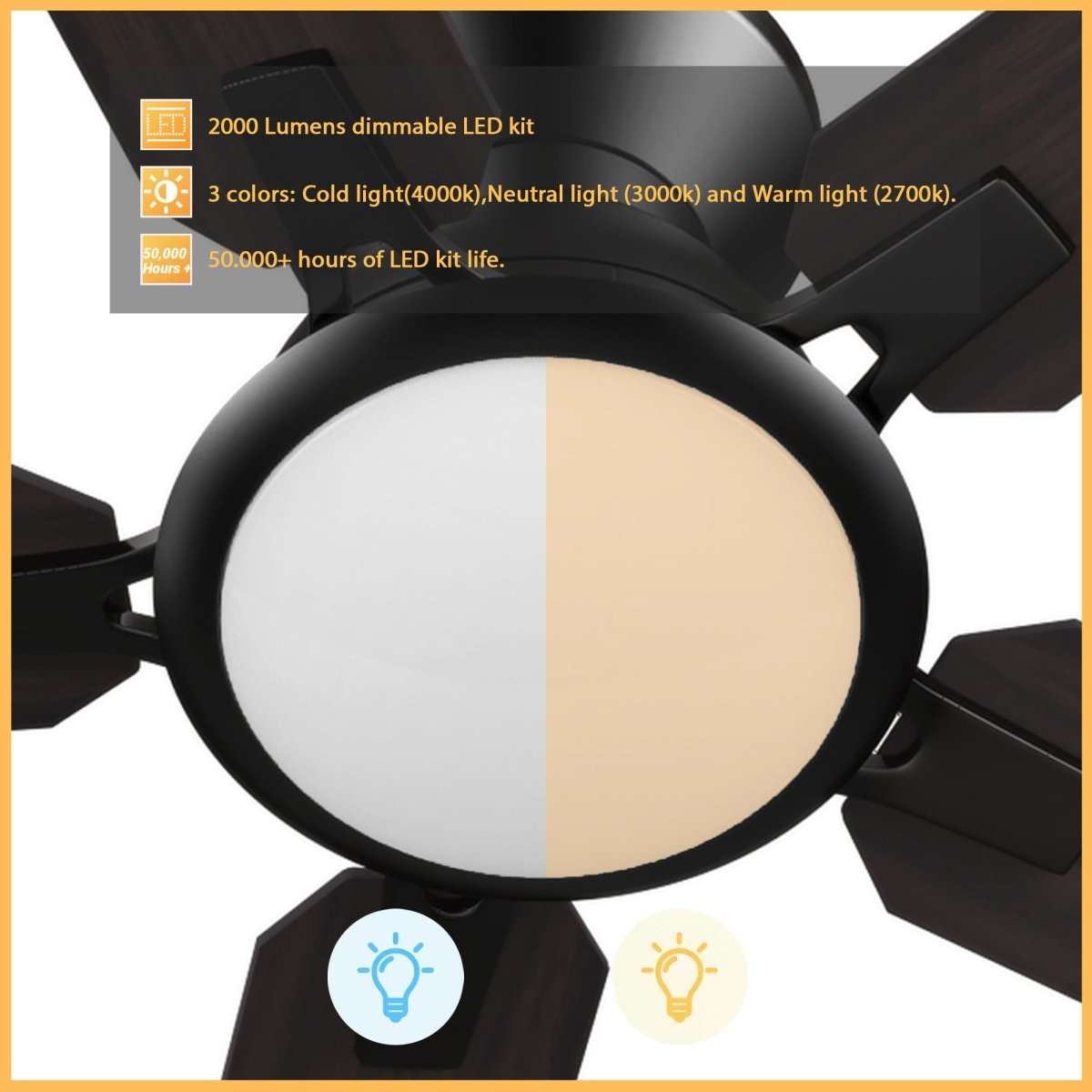 This Carro USA Espear 52'' smart ceiling fan keeps your space cool, bright, and stylish. It is a soft modern masterpiece perfect for your large indoor living spaces. This WiFi smart ceiling fan is a simplicity designing with Black finish, use elegant Plywood blades and has an integrated 4000K LED daylight. The fan features Remote control, Wi-Fi apps, Siri Shortcuts and Voice control technology (compatible with Amazon Alexa and Google Home Assistant ) to set fan preferences.