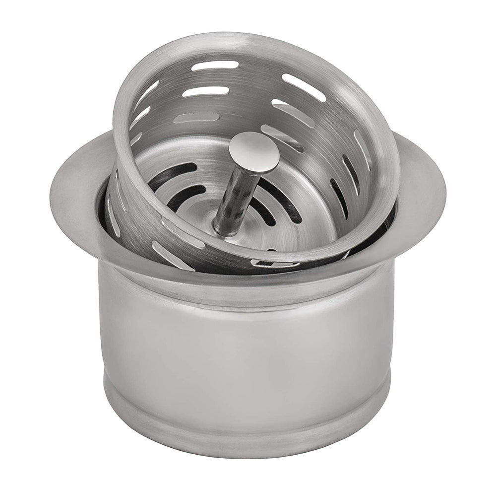 - Includes deep basket strainer. Helps trap large food debris and protect your disposal and drain. Convenient handle allows you to pull out the basket easily to empty into your trash.