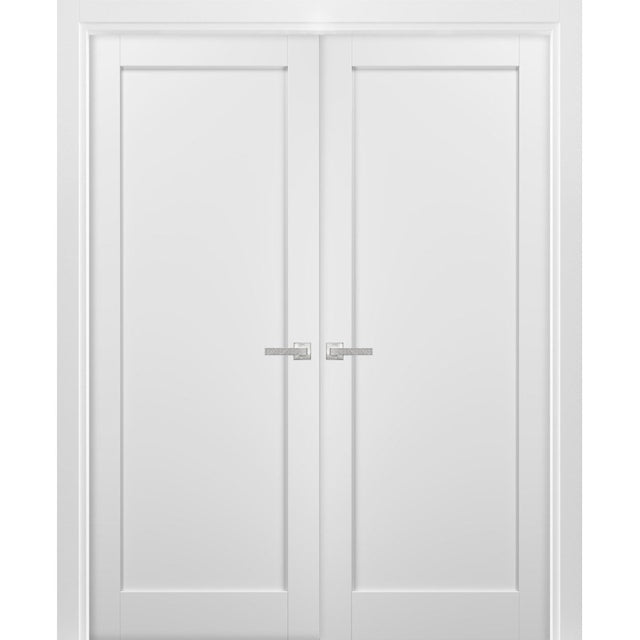 French Double Panel Doors with Hardware | Quadro 4111 White Silk | Panel Frame Trims | Bathroom Bedroom Interior Sturdy Door