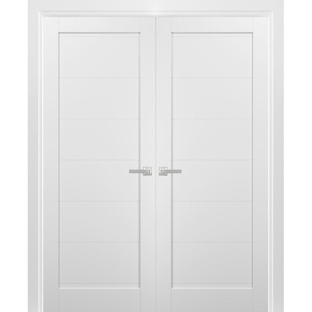French Double Panel Doors with Hardware | Quadro 4115 White Silk | Panel Frame Trims | Bathroom Bedroom Interior Sturdy Door