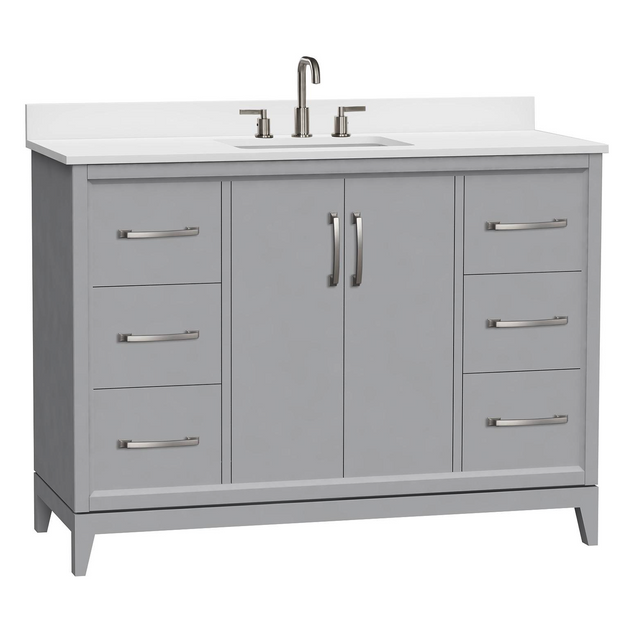 Gray 48" Luton Freestanding Solid Wood Bathroom Vanity With Crystal White Engineered Stone Sink Top & 4 In. Backsplash in Nature Wood Finish is backordered and will ship as soon as it is back in stock.