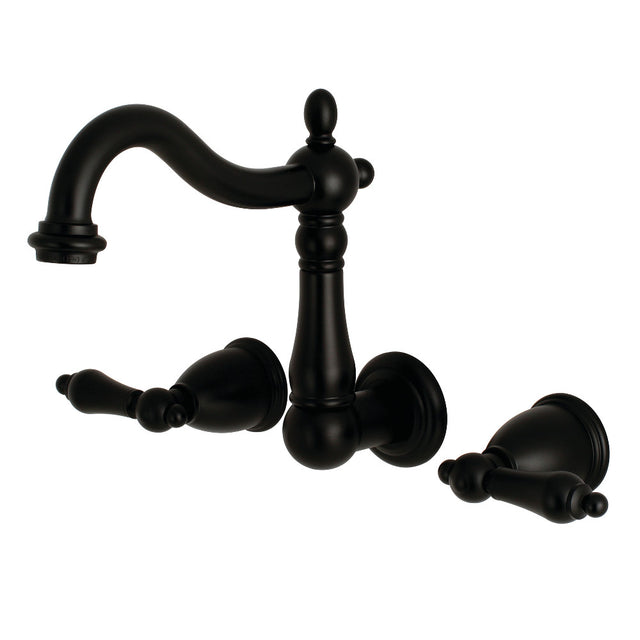 A lavish spark of traditionally stylized glamour is brought to your bathroom ensemble with this beautiful faucet. Attached to the wall behind your sink, the horizontal pop adds a stunning element to your bathroom design. Clean-up is also made a breeze as counter space is cleared up. The Heritage 8-Inch Center Wall Mount Bathroom Faucet and its featured sturdy brass construction and premium matte black finish are guaranteed to glamorize your home's traditional ensemble for years to come. Celebrate sophistication and traditional decor with this statement piece.