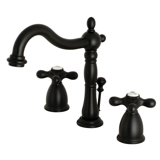 A lavish spark of traditionally stylized glamour is brought to your bathroom ensemble with this beautiful faucet. Ideal for more spacious bathrooms, widespread faucets are more spread apart and feature a 3-hole installation. The Heritage 8-inch widespread bathroom faucet with brass pop-up and its featured sturdy brass construction and premium matte black finish are guaranteed to glamorize your home's traditional ensemble for years to come. Celebrate sophistication and traditional decor with this statement piece. A matching finish drain is also included.