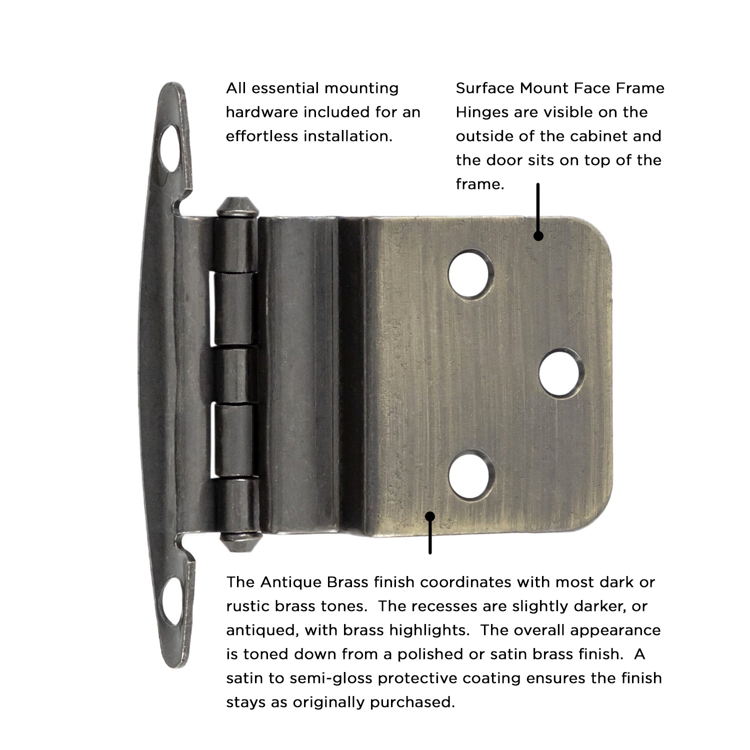 Surface Mount Collection Hinge 3/8 Inch Inset Surface Face Frame Free Swinging (2 Hinges/Per Pack) - Hickory Hardware
