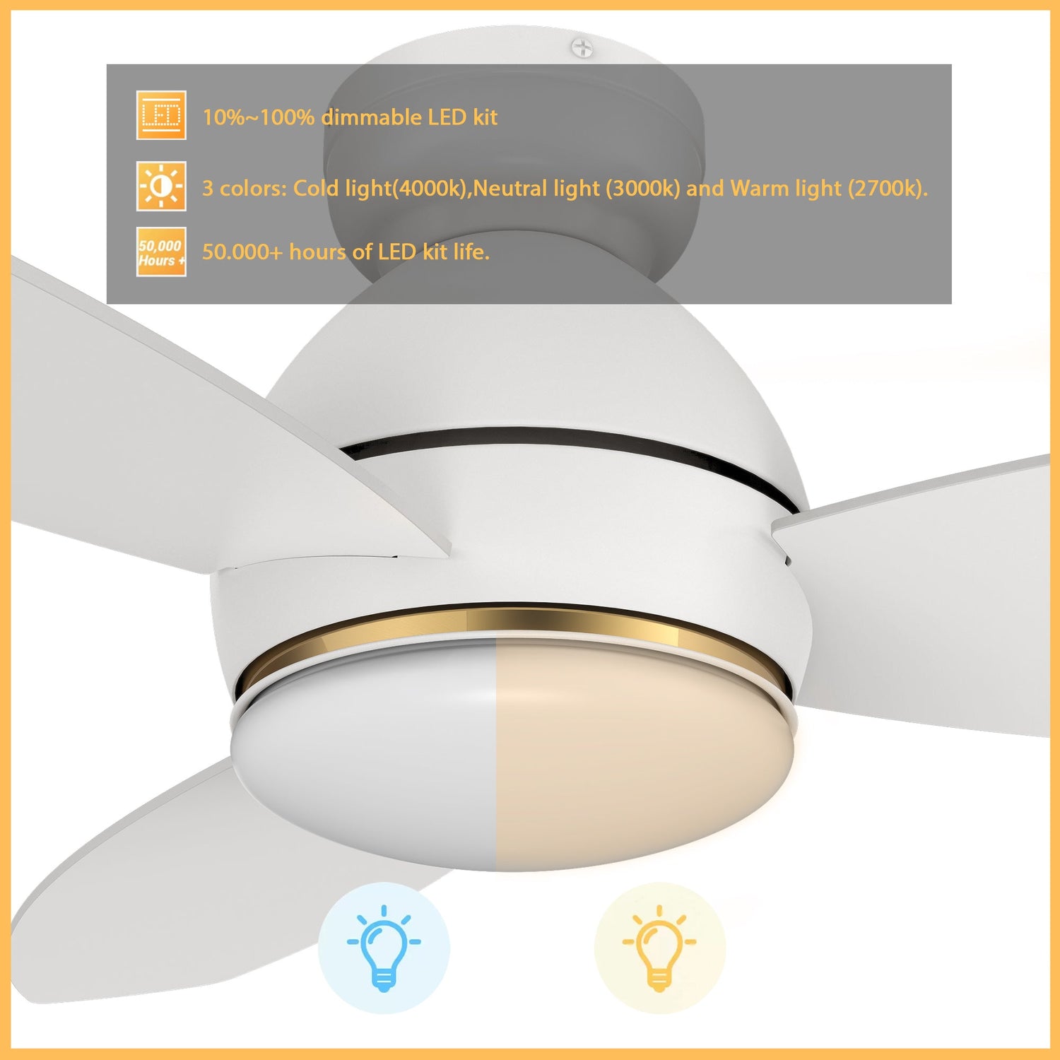 HOBART 48 In 3 Blade Smart Ceiling Fan With Integrated LED Lights With Google Home
