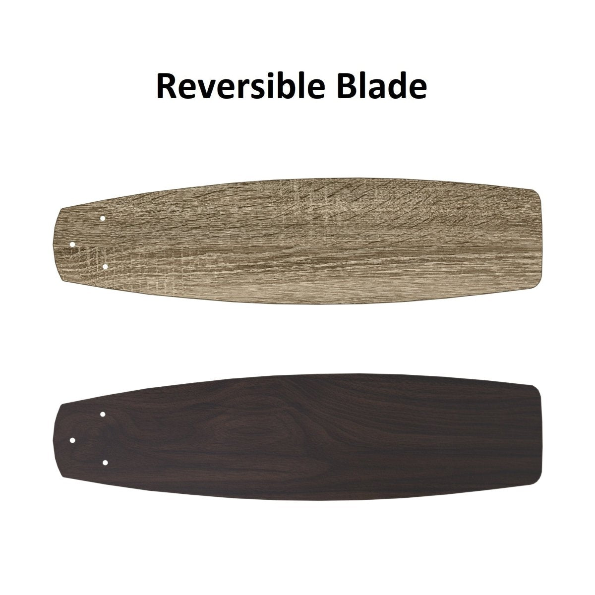 Hobart Smart Ceiling Fan with 3 blades and a 48-inch blade sweep with a flush mounted motor case and nature inspired blades. The wide paddle shaped fan blades are reversible with walnut finish on one side and barnwood finish on the other. The motor case is a soft matte black finish and one of our low profile flush mounted DC motor fans. This fan has a low profile design, installing flush onto a ceiling. The height is only 7.8" from ceiling to blades and 12.5" from ceiling to bottom of light shade. A dimmable 4000K LED lighting kit that can change between bright white, soft warm light, and a combination of both for a neutral temperature. The frosted glass LED light shade is adorned with gold finish detail that adds a touch of sophistication to the ceiling fan. The fan features Remote control, Wi-Fi apps, Siri Shortcuts, and Voice control technology (compatible with Amazon Alexa and Google Home Assistant ) to set fan preferences.