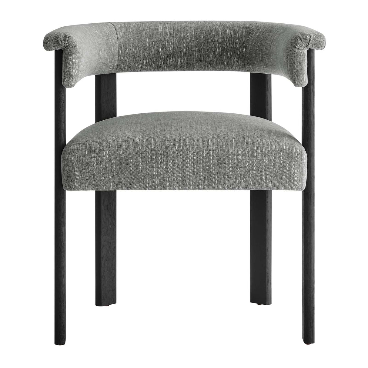 Feel the exquisite combination of modern chic and ultimate comfort with the Imogen Fabric Dining Chair Set of 2. These contemporary dining chairs feature a unique barrel back silhouette that cradles you in luxury with its curved backrest and open design, offering both support and style. The foundation of each dining room armchair is built on sturdy wood legs, for durability and strength to accompany its aesthetic appeal. The seats and backrests, constructed from high-quality wood, are enveloped in a dense layer of foam and fabric upholstery, creating an inviting look that beckons you to sit and relax well after you've finished eating. The fixed seat and cushion design provide a seamless, clean look that complements any dining table with grace. These curved back dining chairs are equipped with non-marking plastic foot pins, protecting your flooring. Perfectly suited as an accent chair or part of your kitchen & dining room ensemble, this set of two rounded back dining chairs seamlessly integrates with a variety of decor themes, from modern farmhouse to contemporary and minimalist aesthetics. Easy to assemble and designed with the modern home in mind, the Imogen barrel chair set is not only a practical addition to your home but also a reflection of sophisticated taste. Dining Side Chair Weight Capacity: 331 lbs
