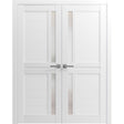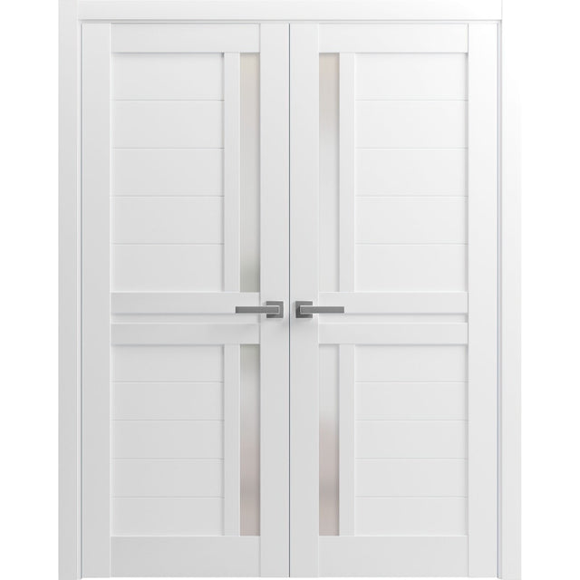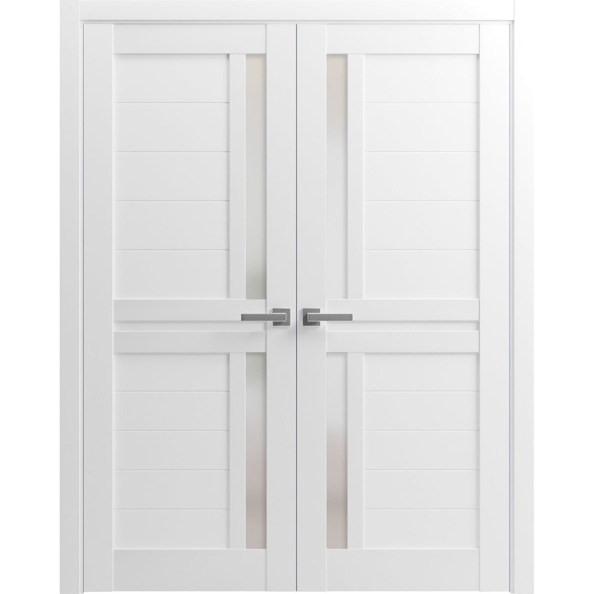 Interior Solid French Double Doors | Veregio 7288 White Silk with Frosted Glass | Wood Solid Panel Frame Trims | Closet Bedroom Sturdy Doors