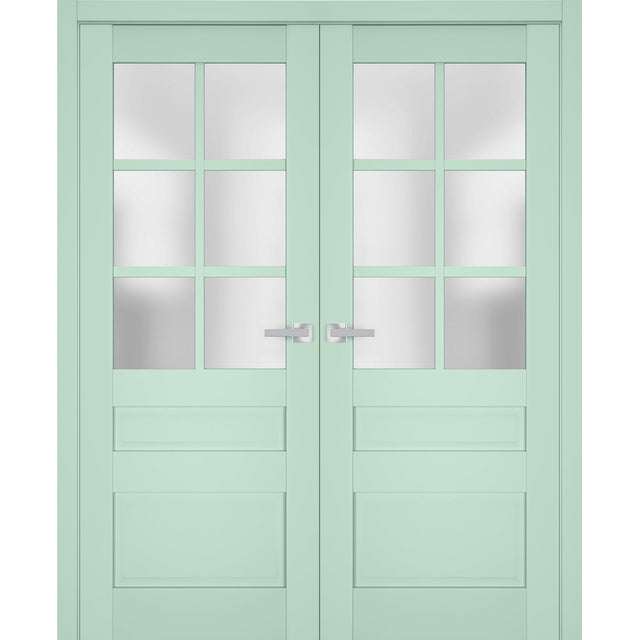 Interior Solid French Double Doors | Veregio 7339 Oliva with Frosted Glass | Wood Solid Panel Frame Trims | Closet Bedroom Sturdy Doors - 80 inch / 36 inch is backordered and will ship as soon as it is back in stock.