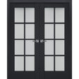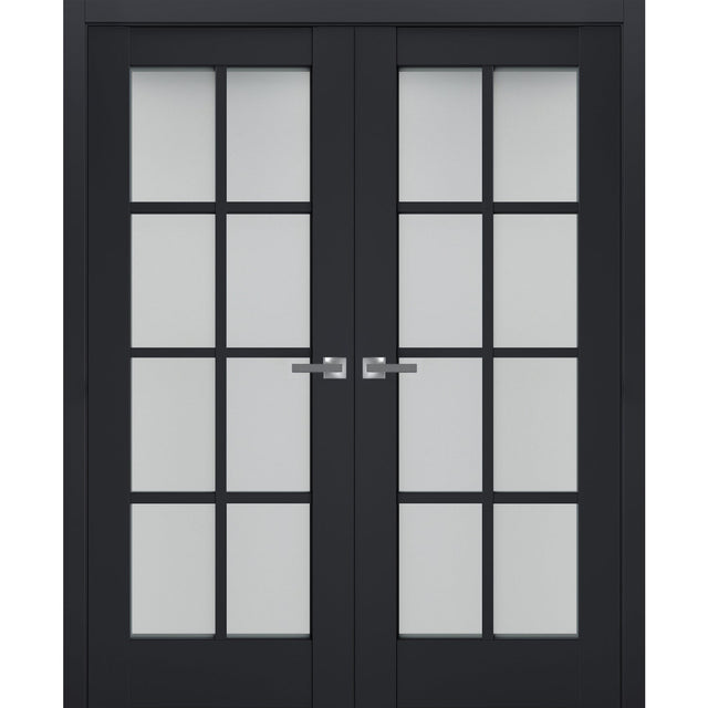 Interior Solid French Double Doors | Veregio 7412 Antracite with Frosted Glass | Wood Solid Panel Frame Trims | Closet Bedroom Sturdy Doors