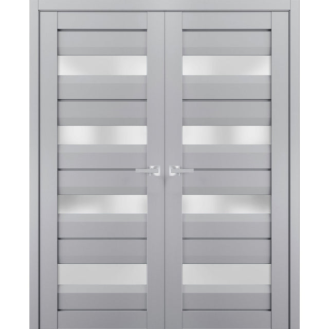 Interior Solid French Double Doors | Veregio 7455 Matte Grey with Frosted Glass | Wood Solid Panel Frame Trims | Closet Bedroom Sturdy Doors - 80 inch / 36 inch is backordered and will ship as soon as it is back in stock.
