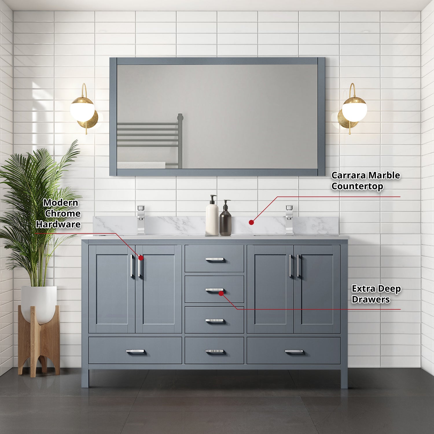 Jacques 60 in. Freestanding Bathroom Vanity with White Carrara Marble Top, White Square Sink - Distressed Grey is backordered and will ship as soon as it is back in stock.