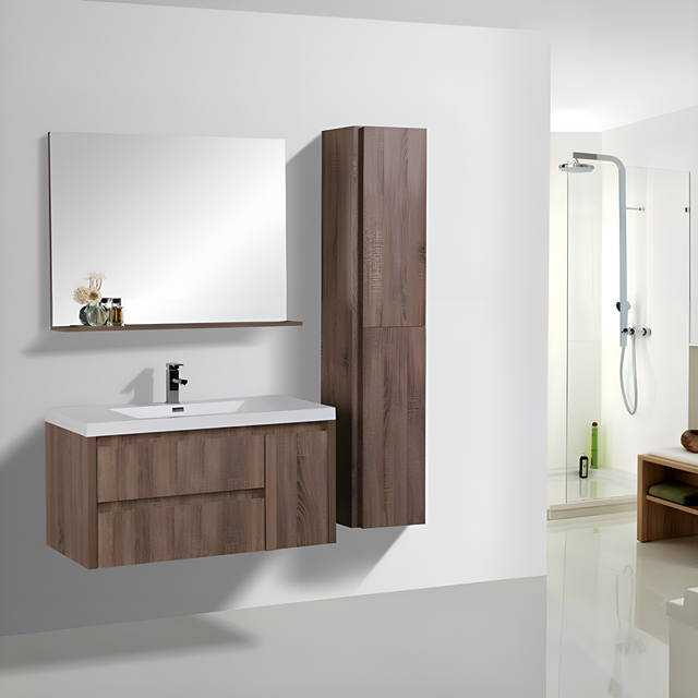 Jade S. Oak Floating / Wall Mounted Bathroom Linen Side Cabinet With Soft Closing Doors