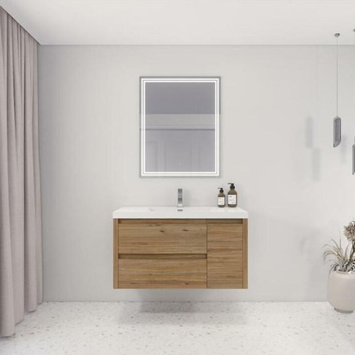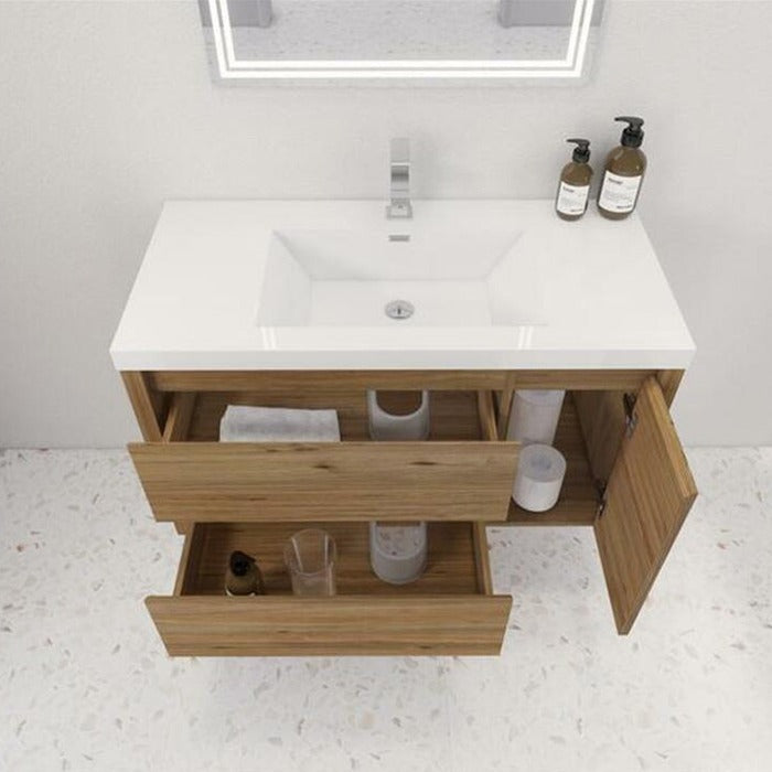 Jade Wall Mounted Bathroom Vanity with Reinforced Acrylic Sink - 36 INCH / Natural Oak is backordered and will ship as soon as it is back in stock.