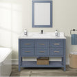 Upgrade your bathroom’s style with the James 49 In. Steel Blue Freestanding Solid Wood Bathroom Vanity. This exquisite vanity features a stunning steel blue finish that adds a pop of color and beauty to any bathroom space. Constructed from solid wood, it ensures durability and longevity, making it a timeless addition to your home. The crushed marble countertop provides a luxurious touch, while the 4-inch backsplash protects your walls from water damage. The vanity comes with a drop-in sink that integrates seamlessly with the countertop for a sleek and cohesive look. Its generous 49-inch width offers plenty of counter space for your daily essentials, while the spacious cabinetry below includes multiple storage compartments and soft-closing doors to keep your bathroom organized. Whether you're remodeling or designing a new space, this vanity adds both beauty and functionality.